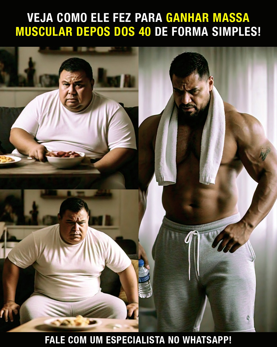 Criativos Meta Ads, para campanha de suplemento para ganho muscular.